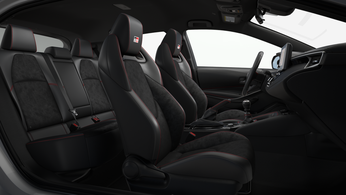 - BRIN•NAUB® and synthetic leather-trimmed sport seats with Red stitching and GR-badged headrests; 6-way adjustable driver's seat with seatback pocket; 4-way adjustable front passenger seat with seatback pocket