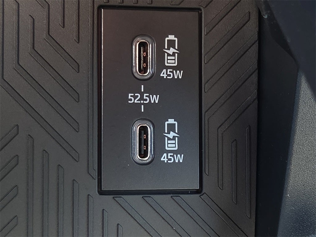 Dual illuminated rear center console-mounted USB charging ports.