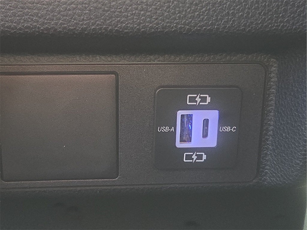 Dual illuminated rear center console-mounted USB charging ports.