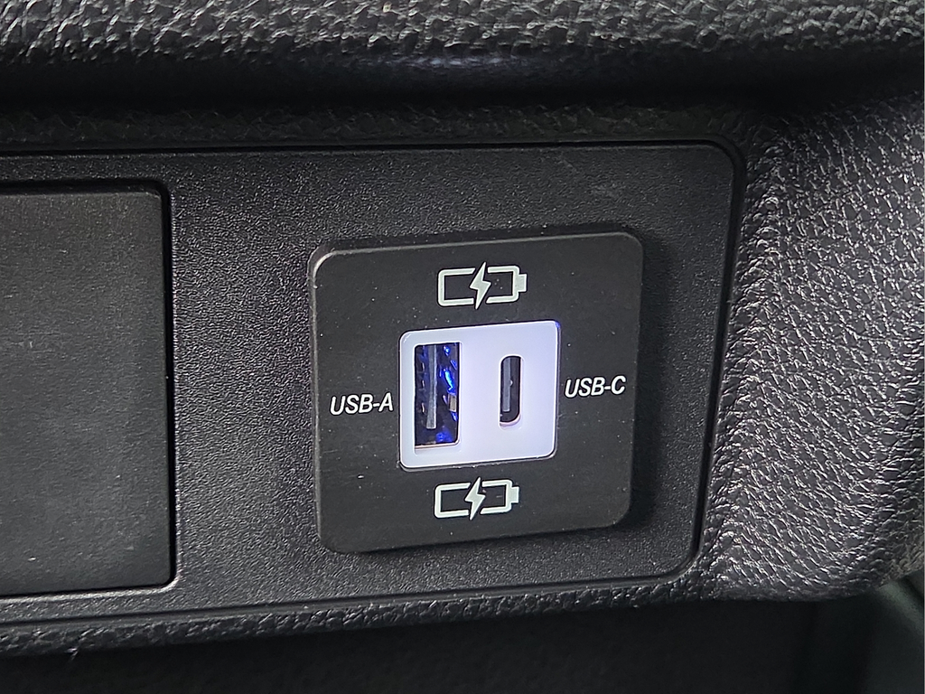 Dual illuminated rear center console-mounted USB charging ports.