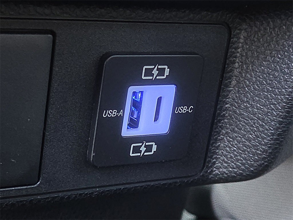Dual illuminated rear center console-mounted USB charging ports.