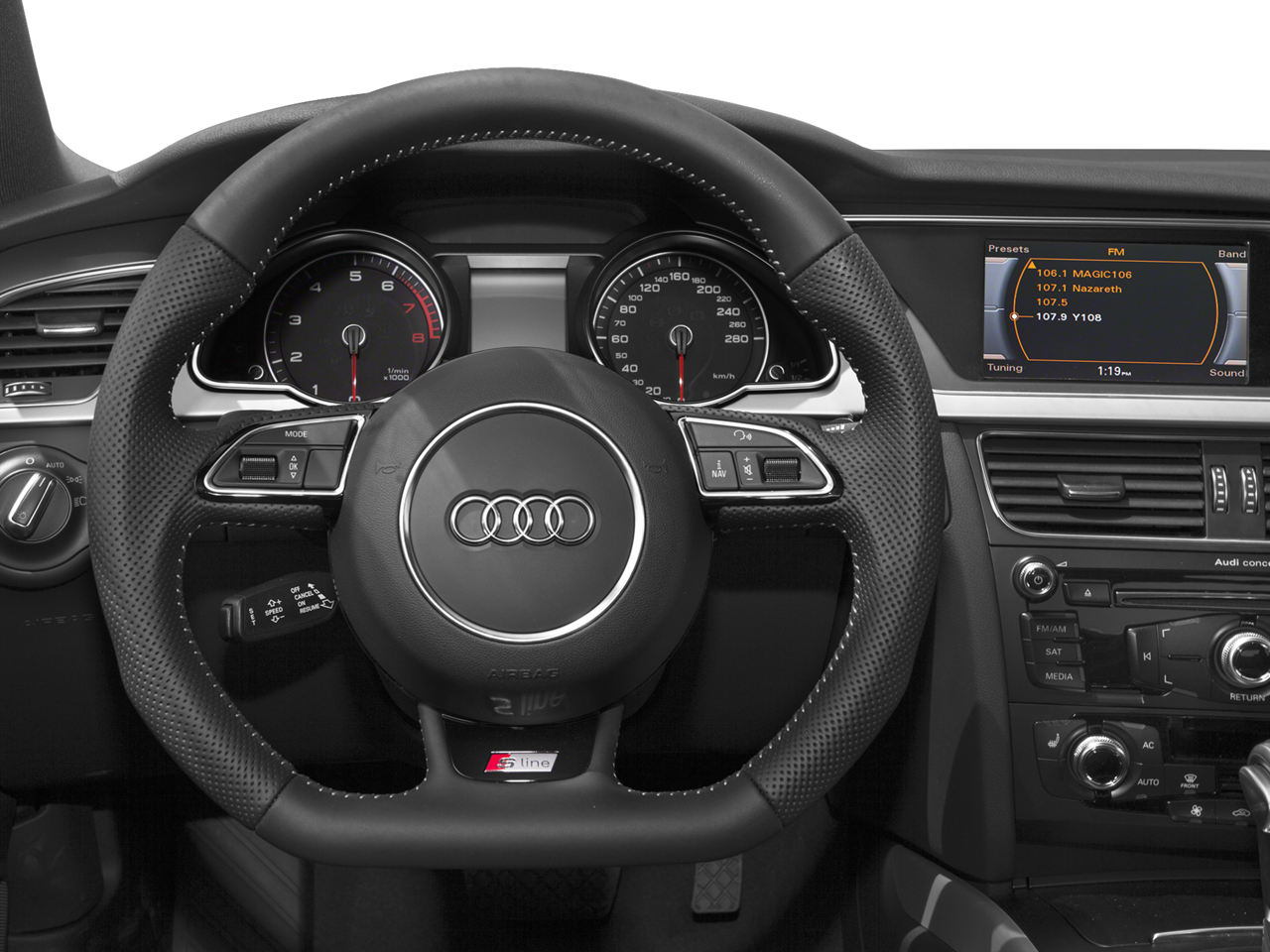 - Radio: Audi Concert System w/1CD Player -inc: MP3 capable, AM/FM radio, auxiliary input jack, SD card slot w/32GB capacity for MP3 files, speed-dependent volume control, MMI navigation plus system for controlling infotainment/climate/car setup w/6.5" color screen, Audi music interface w/iPod integration includes one cable for iPod connection, Audi 6-channel DSP extended sound system w/10 speakers including subwoofer, 180w sounds system, Bluetooth® wireless technology preparation for mobile phone, HD Radio technology and SiriusXM satellite radio (90-day trial subscription)